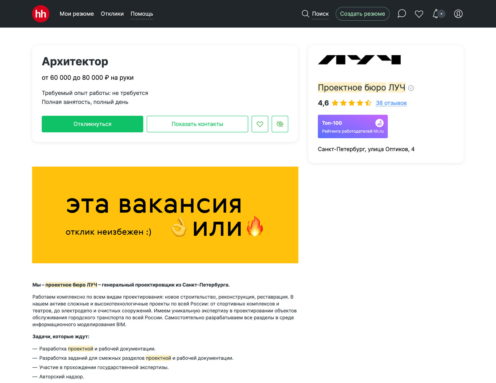 Делаем вакансии Проектного бюро ЛУЧ ярче и с изюминкой. Это пока драфт.