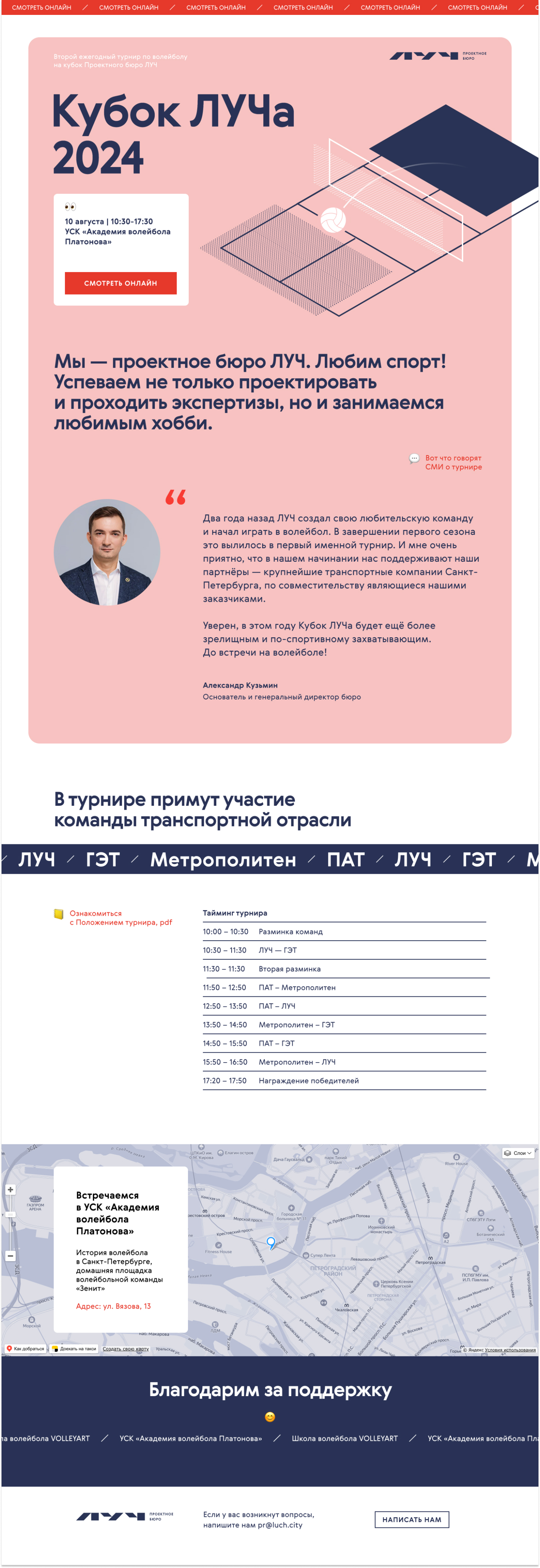 Лендинг турнира Кубок ЛУЧа 2024 по волейболу
